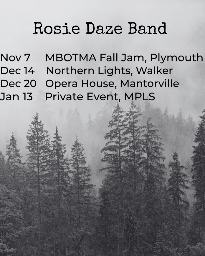 Rosie Daze Band, an award winning band out of Minneapolis (TTOTMusicFest2025), is an all-women string band blending bluegrass and old time genres, sprinkled with Americana and Folk for good measure. A musical experience suited for everything from festivals to house concerts, they're the soulful yearning sound you've been searching for.